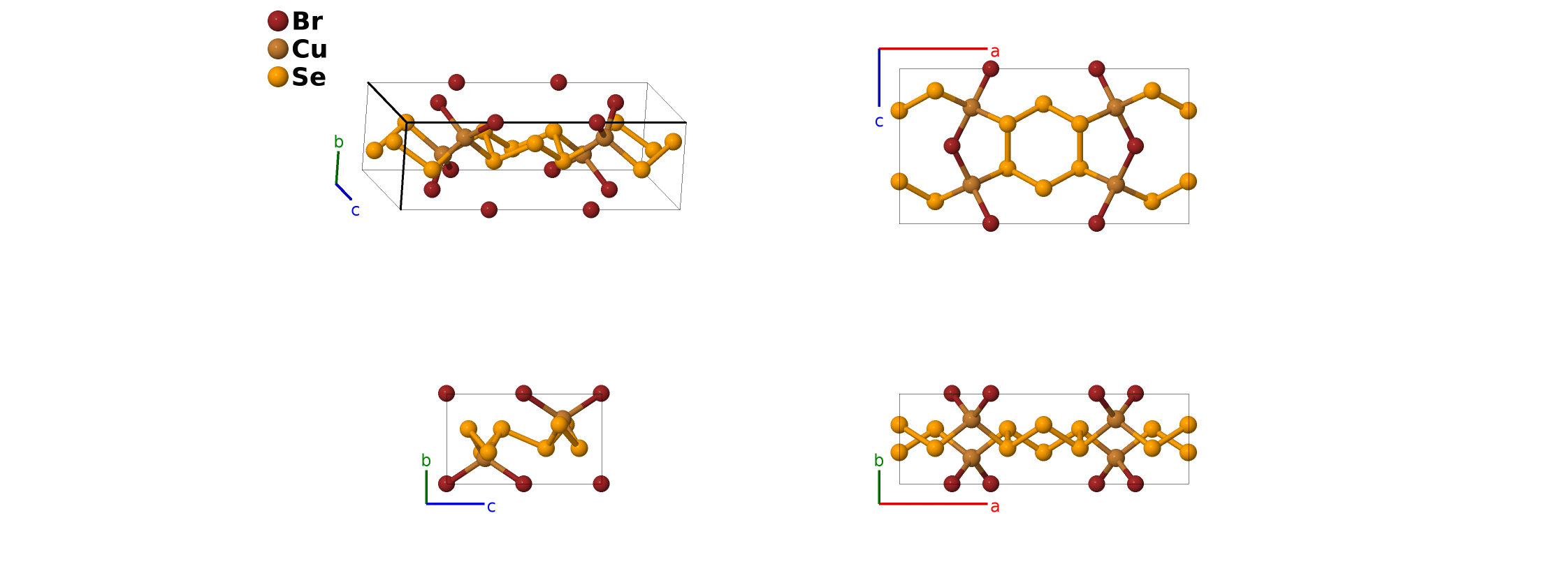 | $\mathbf{B_{5}}$ | = | $\frac{1}{4} \, \mathbf{a}_{1}+y_{2} \, \mathbf{a}_{2}+\frac{1}{4} \, \mathbf{a}_{3}$ | = | $\frac{1}{4}a \,\mathbf{\hat{x}}+b y_{2} \,\mathbf{\hat{y}}+\frac{1}{4}c \,\mathbf{\hat{z}}$ | (4g) | Cu I |