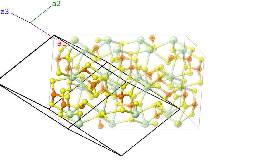 | $\mathbf{B_{32}}$ | = | $\left(x_{4} + z_{4} + \frac{1}{2}\right) \, \mathbf{a}_{1}+\left(y_{4} + z_{4} + \frac{1}{2}\right) \, \mathbf{a}_{2}+\left(x_{4} + y_{4} + \frac{1}{2}\right) \, \mathbf{a}_{3}$ | = | $a \left(y_{4} + \frac{1}{4}\right) \,\mathbf{\hat{x}}+a \left(x_{4} + \frac{1}{4}\right) \,\mathbf{\hat{y}}+c \left(z_{4} + \frac{1}{4}\right) \,\mathbf{\hat{z}}$ | (32g) | S I |