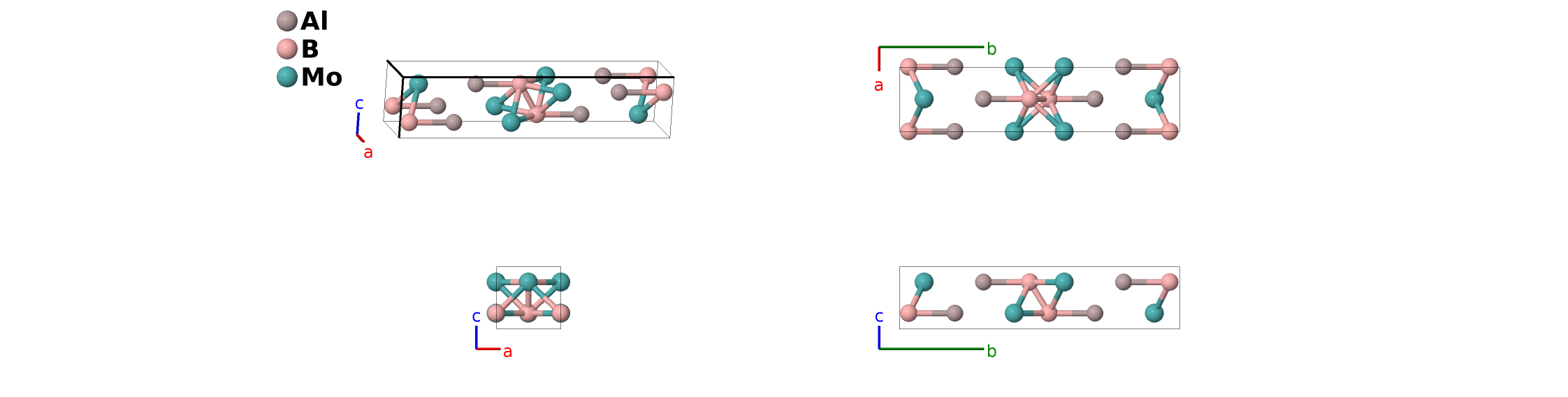 | $\mathbf{B_{6}}$ | = | $y_{3} \, \mathbf{a}_{1}- y_{3} \, \mathbf{a}_{2}+\frac{3}{4} \, \mathbf{a}_{3}$ | = | $- b y_{3} \,\mathbf{\hat{y}}+\frac{3}{4}c \,\mathbf{\hat{z}}$ | (4c) | Mo I |