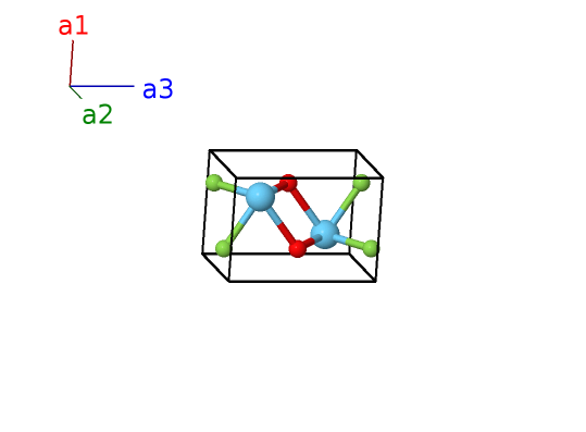 | $\mathbf{B_{3}}$ | = | $\frac{3}{4} \, \mathbf{a}_{1}+\frac{1}{4} \, \mathbf{a}_{2}+\frac{1}{2} \, \mathbf{a}_{3}$ | = | $\frac{3}{4}a \,\mathbf{\hat{x}}+\frac{1}{4}a \,\mathbf{\hat{y}}+\frac{1}{2}c \,\mathbf{\hat{z}}$ | (2b) | O I |