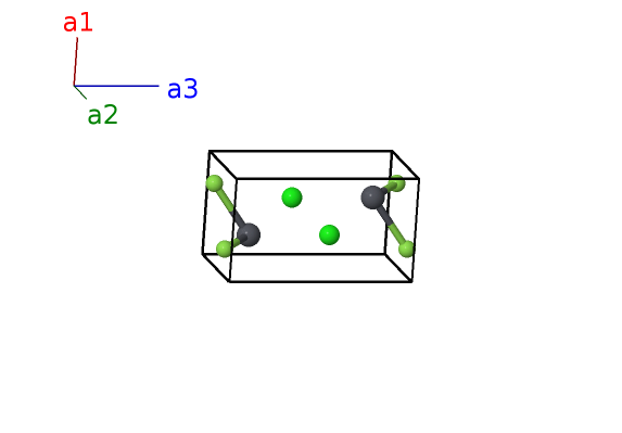 | $\mathbf{B_{3}}$ | = | $\frac{1}{4} \, \mathbf{a}_{1}+\frac{1}{4} \, \mathbf{a}_{2}+z_{2} \, \mathbf{a}_{3}$ | = | $\frac{1}{4}a \,\mathbf{\hat{x}}+\frac{1}{4}a \,\mathbf{\hat{y}}+c z_{2} \,\mathbf{\hat{z}}$ | (2c) | Cl I |