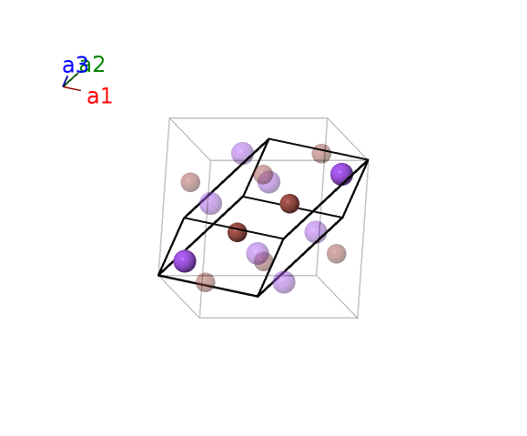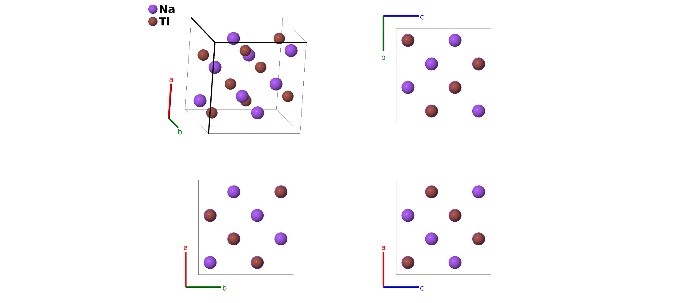 | $\mathbf{B_{2}}$ | = | $\frac{7}{8} \, \mathbf{a}_{1}+\frac{7}{8} \, \mathbf{a}_{2}+\frac{7}{8} \, \mathbf{a}_{3}$ | = | $\frac{7}{8}a \,\mathbf{\hat{x}}+\frac{7}{8}a \,\mathbf{\hat{y}}+\frac{7}{8}a \,\mathbf{\hat{z}}$ | (8a) | Na I |