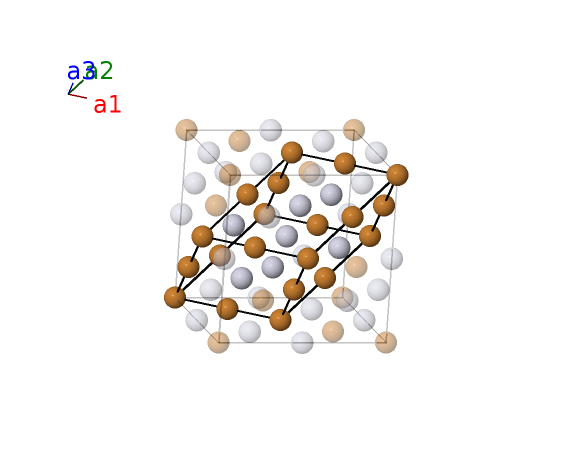 | $\mathbf{B_{4}}$ | = | $\frac{1}{2} \, \mathbf{a}_{1}$ | = | $\frac{1}{4}a \,\mathbf{\hat{y}}+\frac{1}{4}a \,\mathbf{\hat{z}}$ | (16c) | Cu I |