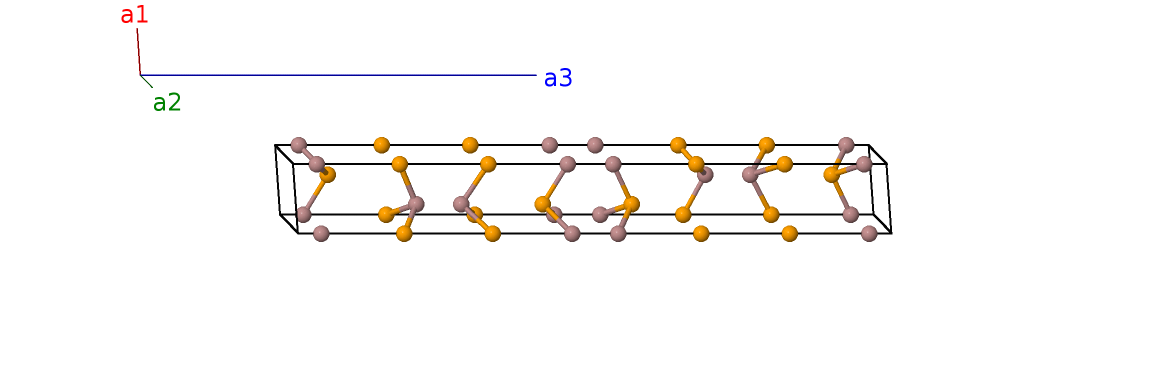 | $\mathbf{B_{13}}$ | = | $\frac{1}{3} \, \mathbf{a}_{1}+\frac{2}{3} \, \mathbf{a}_{2}+z_{7} \, \mathbf{a}_{3}$ | = | $\frac{1}{2}a \,\mathbf{\hat{x}}+\frac{\sqrt{3}}{6}a \,\mathbf{\hat{y}}+c z_{7} \,\mathbf{\hat{z}}$ | (2b) | Se III |