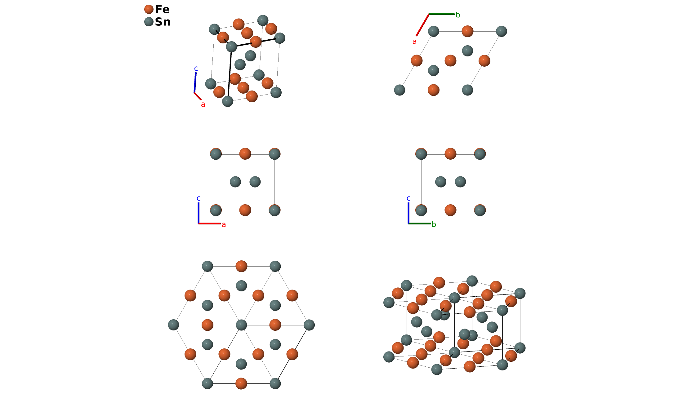 | $\mathbf{B_{6}}$ | = | $\frac{1}{2} \, \mathbf{a}_{1}+\frac{1}{2} \, \mathbf{a}_{2}+z_{3} \, \mathbf{a}_{3}$ | = | $\frac{1}{2}a \,\mathbf{\hat{x}}+c z_{3} \,\mathbf{\hat{z}}$ | (3c) | Fe I |
