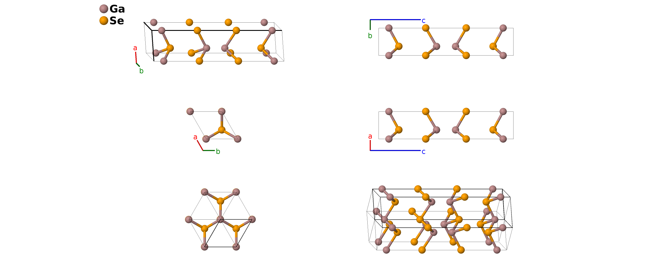 | $\mathbf{B_{5}}$ | = | $\frac{1}{3} \, \mathbf{a}_{1}+\frac{2}{3} \, \mathbf{a}_{2}+z_{3} \, \mathbf{a}_{3}$ | = | $\frac{1}{2}a \,\mathbf{\hat{x}}+\frac{\sqrt{3}}{6}a \,\mathbf{\hat{y}}+c z_{3} \,\mathbf{\hat{z}}$ | (2h) | Ga II |