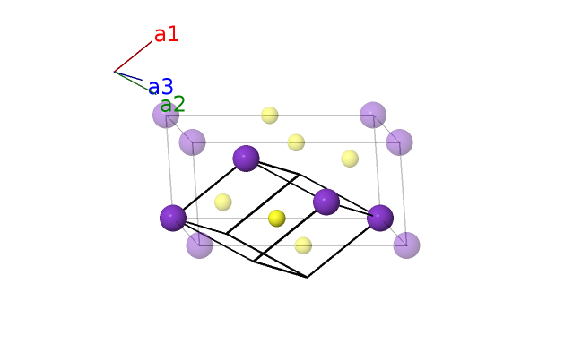| $\mathbf{B_{2}}$ | = | $\frac{1}{2} \, \mathbf{a}_{1}+\frac{1}{2} \, \mathbf{a}_{2}+\frac{1}{2} \, \mathbf{a}_{3}$ | = | $\frac{1}{2}c \,\mathbf{\hat{z}}$ | (1b) | S I |