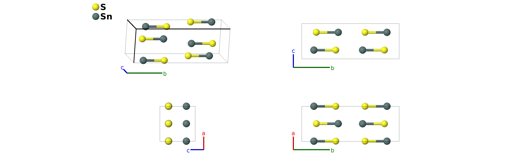 | $\mathbf{B_{4}}$ | = | $y_{2} \, \mathbf{a}_{1}- y_{2} \, \mathbf{a}_{2}+\frac{3}{4} \, \mathbf{a}_{3}$ | = | $- b y_{2} \,\mathbf{\hat{y}}+\frac{3}{4}c \,\mathbf{\hat{z}}$ | (4c) | Sn I |
