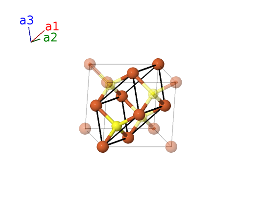 | $\mathbf{B_{2}}$ | = | $\frac{1}{4} \, \mathbf{a}_{1}+\frac{1}{4} \, \mathbf{a}_{2}+\frac{1}{4} \, \mathbf{a}_{3}$ | = | $\frac{1}{4}a \,\mathbf{\hat{x}}+\frac{1}{4}b \,\mathbf{\hat{y}}+\frac{1}{4}c \,\mathbf{\hat{z}}$ | (4c) | S I |