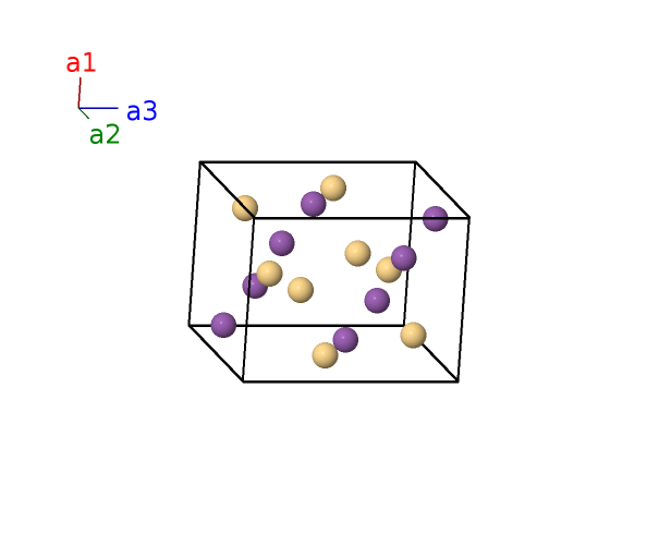 | $\mathbf{B_{8}}$ | = | $- \left(x_{1} - \frac{1}{2}\right) \, \mathbf{a}_{1}+\left(y_{1} + \frac{1}{2}\right) \, \mathbf{a}_{2}+z_{1} \, \mathbf{a}_{3}$ | = | $- a \left(x_{1} - \frac{1}{2}\right) \,\mathbf{\hat{x}}+b \left(y_{1} + \frac{1}{2}\right) \,\mathbf{\hat{y}}+c z_{1} \,\mathbf{\hat{z}}$ | (8c) | Cd I |