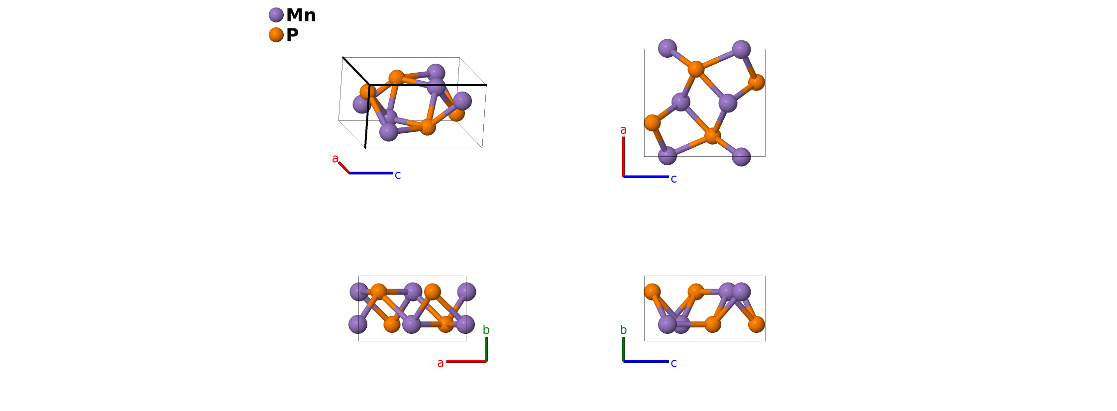 | $\mathbf{B_{1}}$ | = | $x_{1} \, \mathbf{a}_{1}+\frac{1}{4} \, \mathbf{a}_{2}+z_{1} \, \mathbf{a}_{3}$ | = | $a x_{1} \,\mathbf{\hat{x}}+\frac{1}{4}b \,\mathbf{\hat{y}}+c z_{1} \,\mathbf{\hat{z}}$ | (4c) | Mn I |