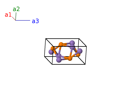 | $\mathbf{B_{2}}$ | = | $- \left(x_{1} - \frac{1}{2}\right) \, \mathbf{a}_{1}+\frac{3}{4} \, \mathbf{a}_{2}+\left(z_{1} + \frac{1}{2}\right) \, \mathbf{a}_{3}$ | = | $- a \left(x_{1} - \frac{1}{2}\right) \,\mathbf{\hat{x}}+\frac{3}{4}b \,\mathbf{\hat{y}}+c \left(z_{1} + \frac{1}{2}\right) \,\mathbf{\hat{z}}$ | (4c) | Mn I |