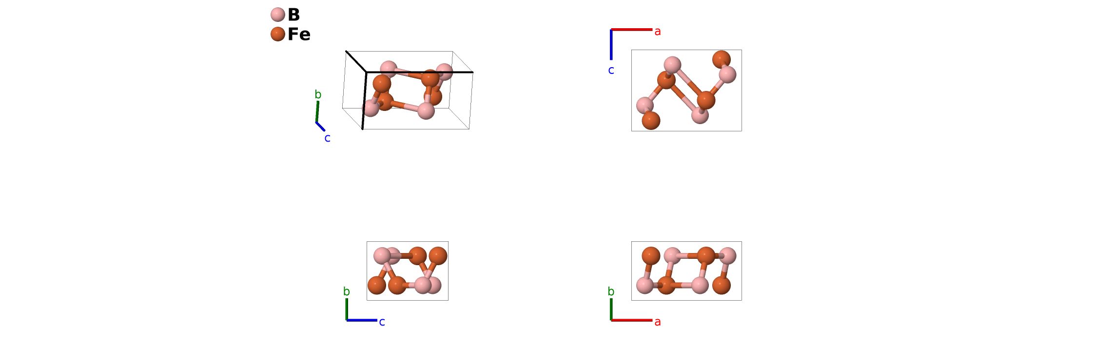 | $\mathbf{B_{5}}$ | = | $x_{2} \, \mathbf{a}_{1}+\frac{1}{4} \, \mathbf{a}_{2}+z_{2} \, \mathbf{a}_{3}$ | = | $a x_{2} \,\mathbf{\hat{x}}+\frac{1}{4}b \,\mathbf{\hat{y}}+c z_{2} \,\mathbf{\hat{z}}$ | (4c) | Fe I |