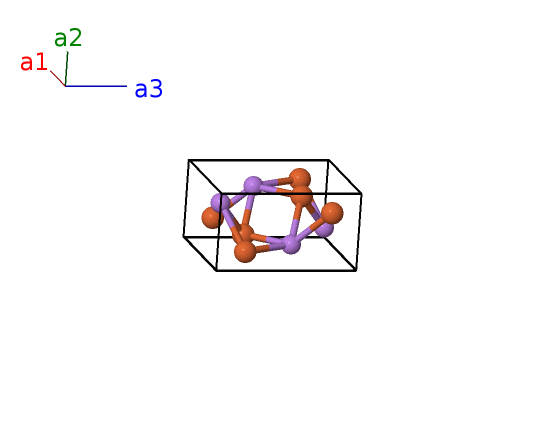 | $\mathbf{B_{5}}$ | = | $x_{2} \, \mathbf{a}_{1}+\frac{1}{4} \, \mathbf{a}_{2}+z_{2} \, \mathbf{a}_{3}$ | = | $a x_{2} \,\mathbf{\hat{x}}+\frac{1}{4}b \,\mathbf{\hat{y}}+c z_{2} \,\mathbf{\hat{z}}$ | (4c) | Fe I |