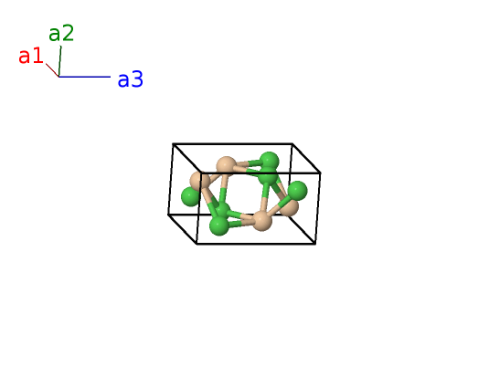 | $\mathbf{B_{6}}$ | = | $- \left(x_{2} - \frac{1}{2}\right) \, \mathbf{a}_{1}+\frac{3}{4} \, \mathbf{a}_{2}+\left(z_{2} + \frac{1}{2}\right) \, \mathbf{a}_{3}$ | = | $- a \left(x_{2} - \frac{1}{2}\right) \,\mathbf{\hat{x}}+\frac{3}{4}b \,\mathbf{\hat{y}}+c \left(z_{2} + \frac{1}{2}\right) \,\mathbf{\hat{z}}$ | (4c) | Si I |