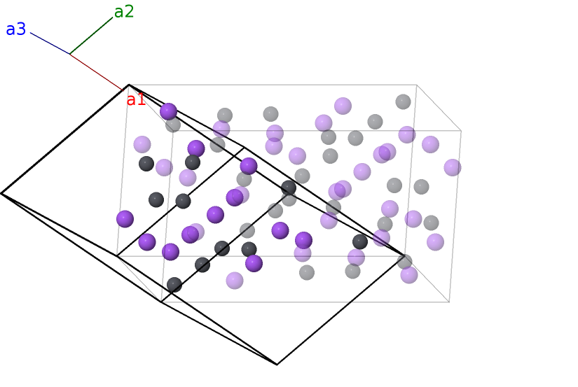 | $\mathbf{B_{5}}$ | = | $\frac{3}{4} \, \mathbf{a}_{1}- \left(x_{1} - \frac{3}{4}\right) \, \mathbf{a}_{2}- x_{1} \, \mathbf{a}_{3}$ | = | $- a x_{1} \,\mathbf{\hat{x}}+\frac{3}{4}c \,\mathbf{\hat{z}}$ | (16e) | Na I |