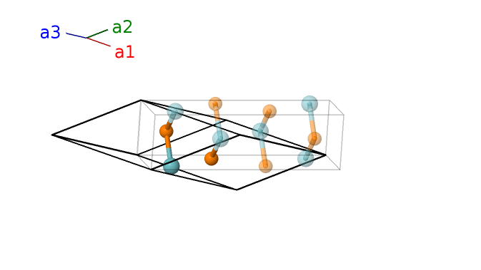 | $\mathbf{B_{4}}$ | = | $\frac{3}{8} \, \mathbf{a}_{1}+\frac{5}{8} \, \mathbf{a}_{2}+\frac{3}{4} \, \mathbf{a}_{3}$ | = | $\frac{1}{2}a \,\mathbf{\hat{x}}+\frac{1}{4}a \,\mathbf{\hat{y}}+\frac{1}{8}c \,\mathbf{\hat{z}}$ | (4b) | P I |