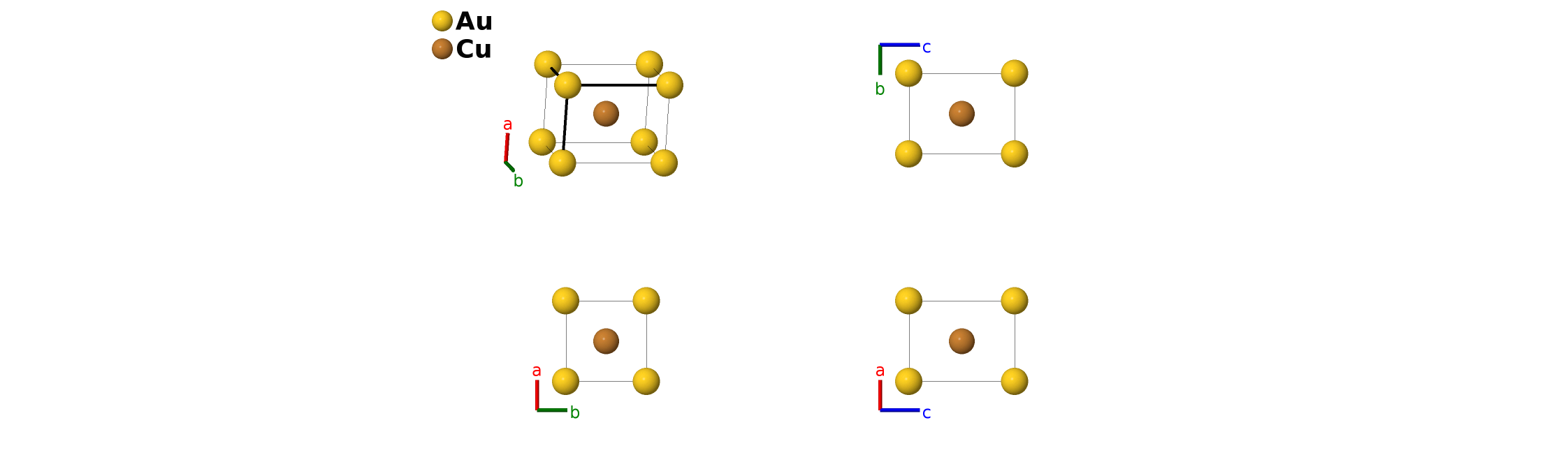 $L1_{0}$ has $c/a ≈ \sqrt{2}$, characteristic of face-centered cubic ordering, while $L2_{a}$ has $c/a ≈ 1$, a body-centered cubic-like system. This structure has the same AFLOW designation, AB_tP2_123_a_d, as $\delta$–CuTi ($L2_{a}$). The only difference in the structures is the c/a ratio. They are generated by the same symmetry operations with different sets of parameters (--params) specified in their corresponding CIF files.