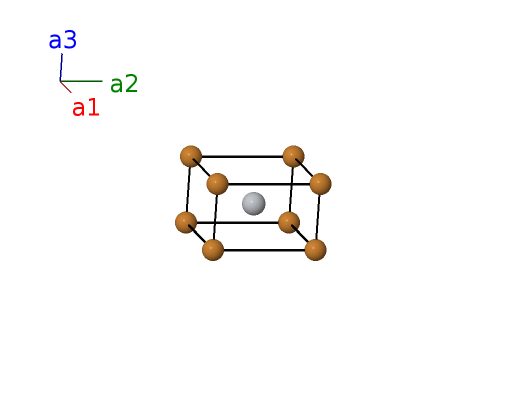 | $\mathbf{B_{2}}$ | = | $\frac{1}{2} \, \mathbf{a}_{1}+\frac{1}{2} \, \mathbf{a}_{2}+\frac{1}{2} \, \mathbf{a}_{3}$ | = | $\frac{1}{2}a \,\mathbf{\hat{x}}+\frac{1}{2}a \,\mathbf{\hat{y}}+\frac{1}{2}c \,\mathbf{\hat{z}}$ | (1d) | Ti I |