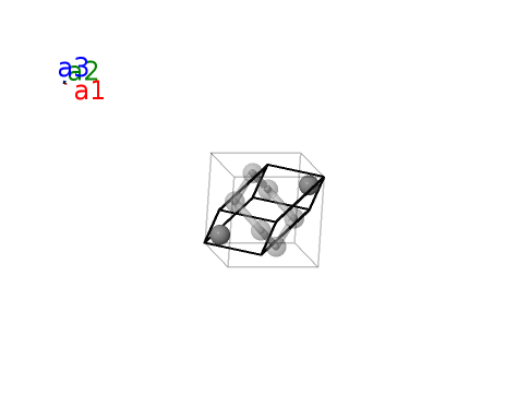 | $\mathbf{B_{1}}$ | = | $\frac{1}{8} \, \mathbf{a}_{1}+\frac{1}{8} \, \mathbf{a}_{2}+\frac{1}{8} \, \mathbf{a}_{3}$ | = | $\frac{1}{8}a \,\mathbf{\hat{x}}+\frac{1}{8}a \,\mathbf{\hat{y}}+\frac{1}{8}a \,\mathbf{\hat{z}}$ | (8a) | C I |