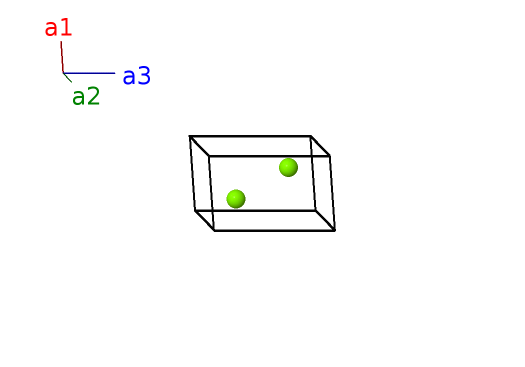 | $\mathbf{B_{1}}$ | = | $\frac{1}{3} \, \mathbf{a}_{1}+\frac{2}{3} \, \mathbf{a}_{2}+\frac{1}{4} \, \mathbf{a}_{3}$ | = | $\frac{1}{2}a \,\mathbf{\hat{x}}+\frac{\sqrt{3}}{6}a \,\mathbf{\hat{y}}+\frac{1}{4}c \,\mathbf{\hat{z}}$ | (2c) | Mg I |