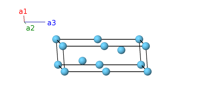 | $\mathbf{B_{2}}$ | = | $\frac{1}{2} \, \mathbf{a}_{3}$ | = | $\frac{1}{2}c \,\mathbf{\hat{z}}$ | (2a) | La I |