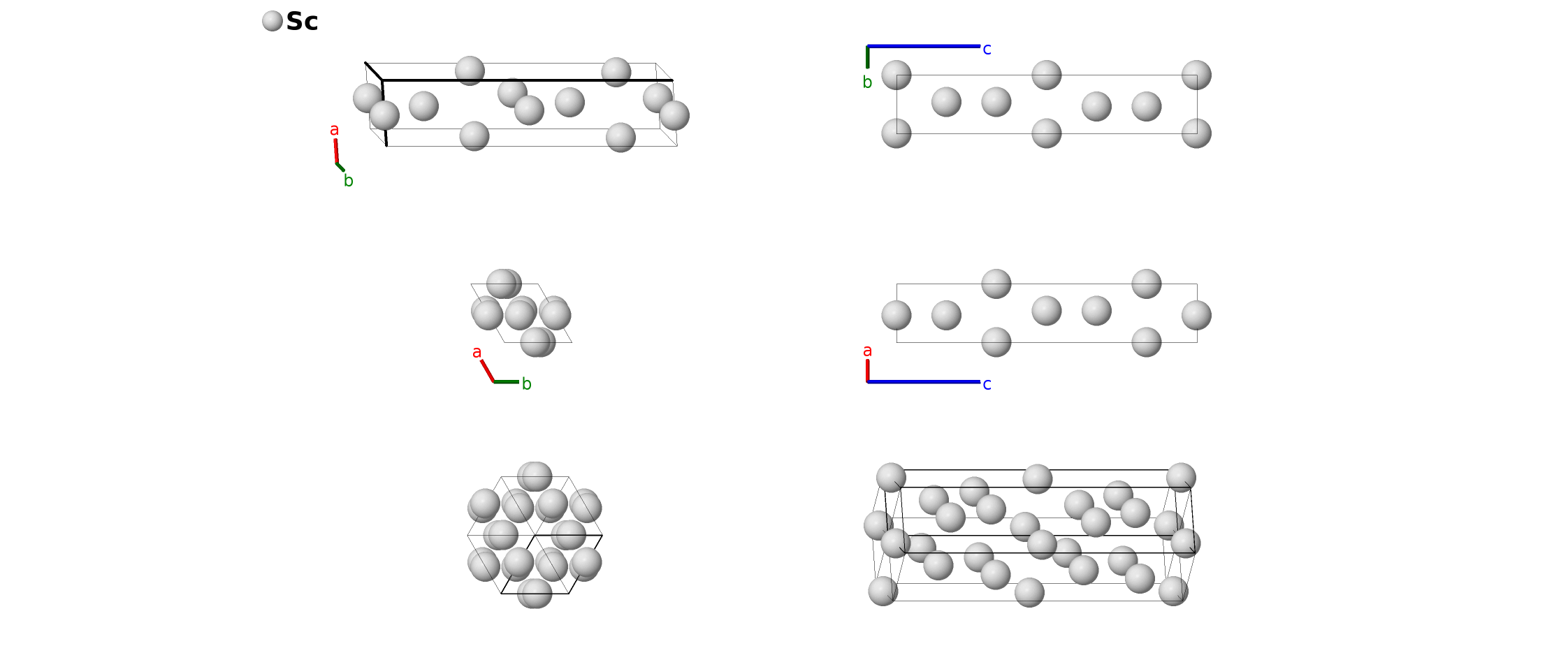 | $\mathbf{B_{4}}$ | = | $- x_{1} \, \mathbf{a}_{1}+\frac{1}{2} \, \mathbf{a}_{3}$ | = | $- \frac{1}{2}a x_{1} \,\mathbf{\hat{x}}+\frac{\sqrt{3}}{2}a x_{1} \,\mathbf{\hat{y}}+\frac{1}{2}c \,\mathbf{\hat{z}}$ | (6a) | Sc I |