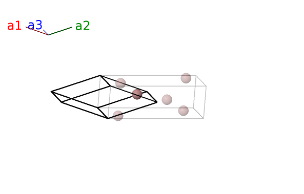 | $\mathbf{B_{2}}$ | = | $y_{1} \, \mathbf{a}_{1}- y_{1} \, \mathbf{a}_{2}+\frac{3}{4} \, \mathbf{a}_{3}$ | = | $\frac{3}{4}c \cos{\beta} \,\mathbf{\hat{x}}- b y_{1} \,\mathbf{\hat{y}}+\frac{3}{4}c \sin{\beta} \,\mathbf{\hat{z}}$ | (4e) | Ga I |