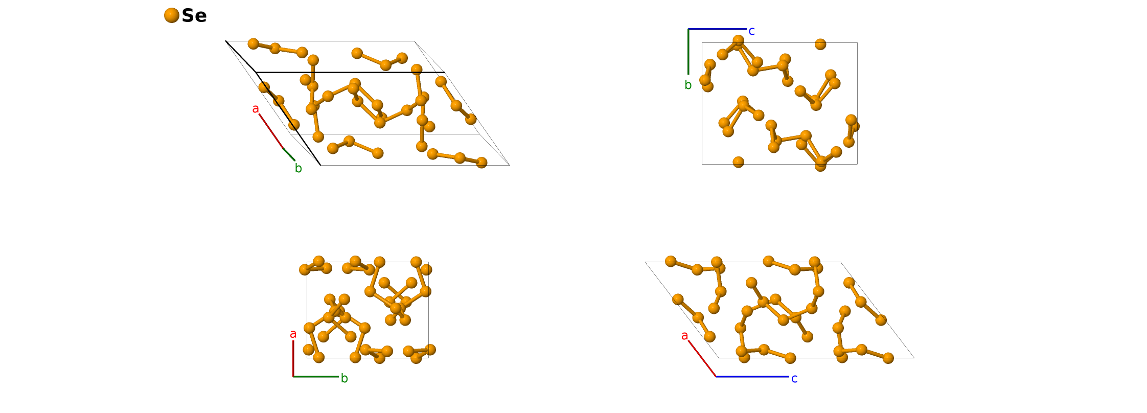 | $\mathbf{B_{4}}$ | = | $x_{1} \, \mathbf{a}_{1}- \left(y_{1} - \frac{1}{2}\right) \, \mathbf{a}_{2}+\left(z_{1} + \frac{1}{2}\right) \, \mathbf{a}_{3}$ | = | $\left(a x_{1} + c \left(z_{1} + \frac{1}{2}\right) \cos{\beta}\right) \,\mathbf{\hat{x}}- b \left(y_{1} - \frac{1}{2}\right) \,\mathbf{\hat{y}}+c \left(z_{1} + \frac{1}{2}\right) \sin{\beta} \,\mathbf{\hat{z}}$ | (4e) | Se I |
