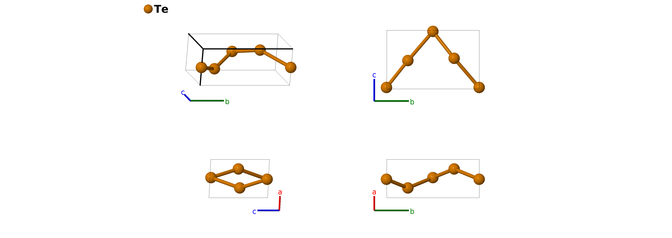 | $\mathbf{B_{3}}$ | = | $x_{2} \, \mathbf{a}_{1}+y_{2} \, \mathbf{a}_{2}+z_{2} \, \mathbf{a}_{3}$ | = | $\left(a x_{2} + c z_{2} \cos{\beta}\right) \,\mathbf{\hat{x}}+b y_{2} \,\mathbf{\hat{y}}+c z_{2} \sin{\beta} \,\mathbf{\hat{z}}$ | (2a) | Te II |