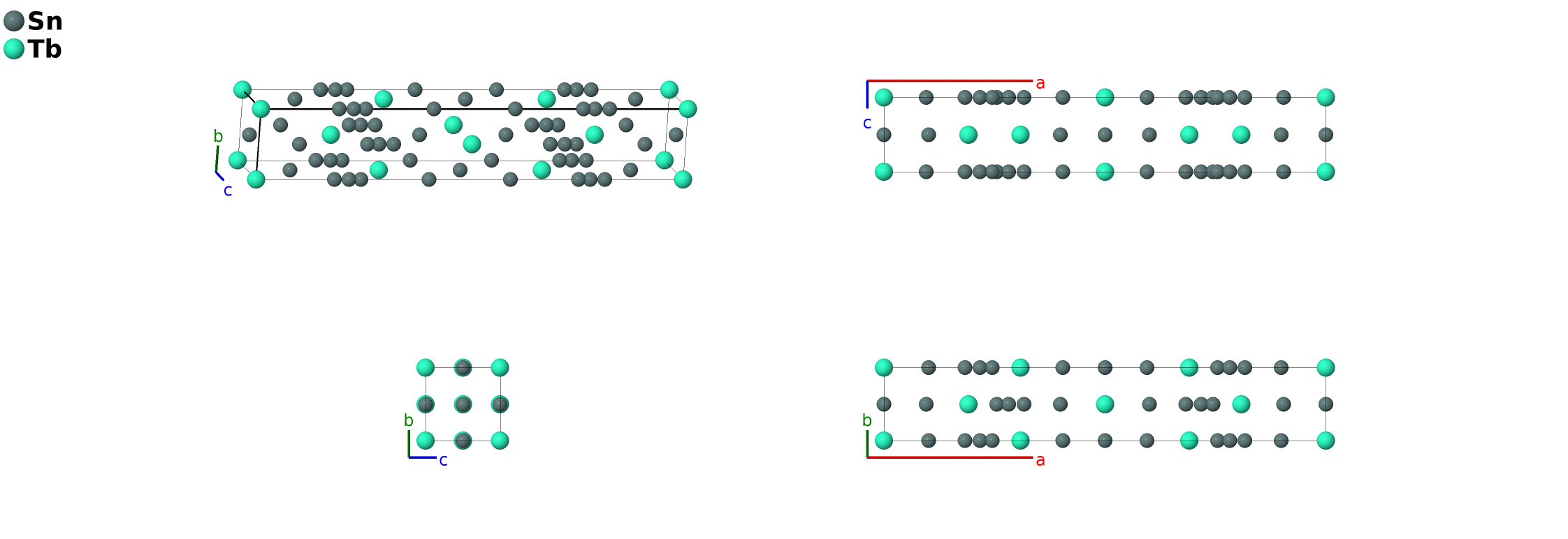 • This is the low temperature phase of Tb$_{3}$Sn$_{7}$. (Palenzona, 1993) describe a high temperature phase but do not give enough information to determine the structure.