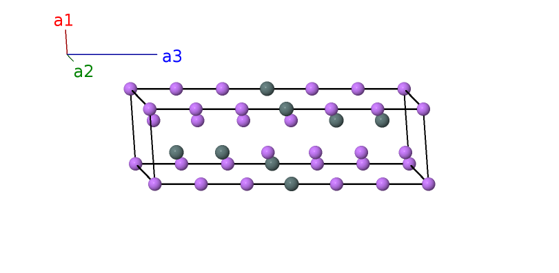 | $\mathbf{B_{12}}$ | = | $\frac{2}{3} \, \mathbf{a}_{1}+\frac{1}{3} \, \mathbf{a}_{2}- z_{7} \, \mathbf{a}_{3}$ | = | $\frac{1}{2}a \,\mathbf{\hat{x}}- \frac{\sqrt{3}}{6}a \,\mathbf{\hat{y}}- c z_{7} \,\mathbf{\hat{z}}$ | (2d) | Li VI |
