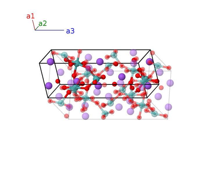 | $\mathbf{B_{14}}$ | = | $\left(y_{4} + \frac{1}{2}\right) \, \mathbf{a}_{1}- \left(y_{4} - \frac{1}{2}\right) \, \mathbf{a}_{2}+\left(z_{4} + \frac{1}{2}\right) \, \mathbf{a}_{3}$ | = | $\frac{1}{2}a \,\mathbf{\hat{x}}- b y_{4} \,\mathbf{\hat{y}}+c \left(z_{4} + \frac{1}{2}\right) \,\mathbf{\hat{z}}$ | (8f) | Na II |