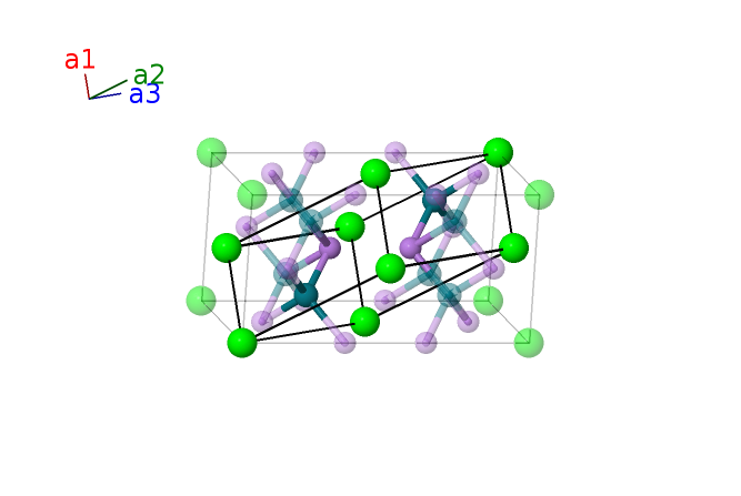 | $\mathbf{B_{2}}$ | = | $\frac{1}{4} \, \mathbf{a}_{1}+\frac{1}{4} \, \mathbf{a}_{2}+\frac{1}{4} \, \mathbf{a}_{3}$ | = | $\frac{1}{4}a \,\mathbf{\hat{x}}+\frac{1}{4}b \,\mathbf{\hat{y}}+\frac{1}{4}c \,\mathbf{\hat{z}}$ | (8f) | Rh I |
