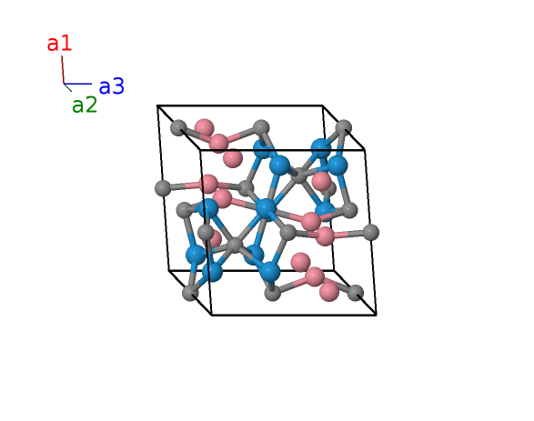 $\mathbf{B_{2}}$ = $\frac{2}{3} \, \mathbf{a}_{1}+\frac{1}{3} \, \mathbf{a}_{2}+\frac{3}{4} \, \mathbf{a}_{3}$ = $\frac{1}{2}a \,\mathbf{\hat{x}}- \frac{\sqrt{3}}{6}a \,\mathbf{\hat{y}}+\frac{3}{4}c \,\mathbf{\hat{z}}$ (2c) C I