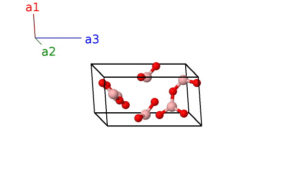 | $\mathbf{B_{12}}$ | = | $- \left(x_{3} - y_{3}\right) \, \mathbf{a}_{1}- x_{3} \, \mathbf{a}_{2}+\left(z_{3} + \frac{2}{3}\right) \, \mathbf{a}_{3}$ | = | $- \frac{1}{2}a \left(2 x_{3} - y_{3}\right) \,\mathbf{\hat{x}}- \frac{\sqrt{3}}{2}a y_{3} \,\mathbf{\hat{y}}+\frac{1}{3}c \left(3 z_{3} + 2\right) \,\mathbf{\hat{z}}$ | (6c) | O II |