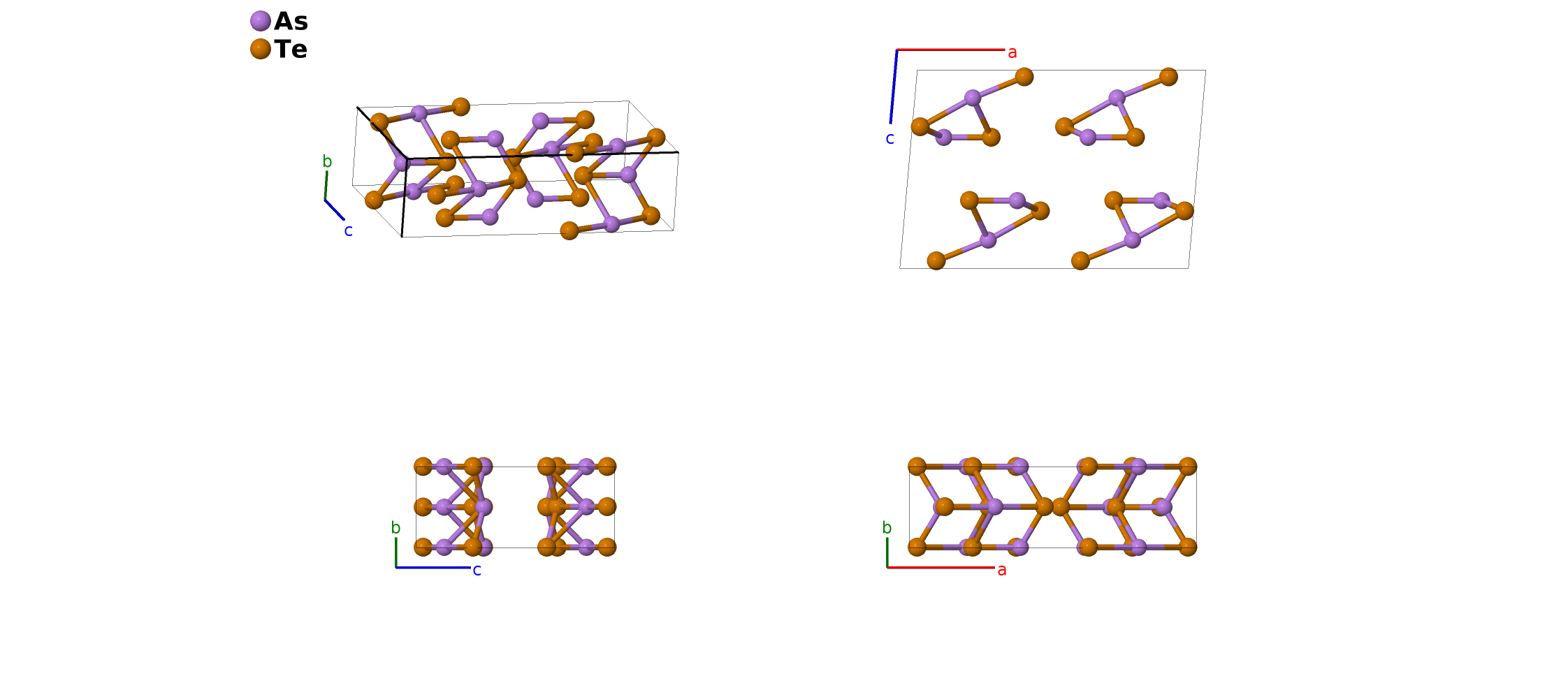 | $\mathbf{B_{7}}$ | = | $x_{4} \, \mathbf{a}_{1}+x_{4} \, \mathbf{a}_{2}+z_{4} \, \mathbf{a}_{3}$ | = | $\left(a x_{4} + c z_{4} \cos{\beta}\right) \,\mathbf{\hat{x}}+c z_{4} \sin{\beta} \,\mathbf{\hat{z}}$ | (4i) | Te II |