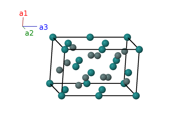 | $\mathbf{B_{4}}$ | = | $\frac{1}{2} \, \mathbf{a}_{1}+\frac{1}{2} \, \mathbf{a}_{2}+\frac{1}{2} \, \mathbf{a}_{3}$ | = | $\frac{1}{2}a \,\mathbf{\hat{x}}+\frac{1}{2}a \,\mathbf{\hat{y}}+\frac{1}{2}c \,\mathbf{\hat{z}}$ | (2d) | Ru II |