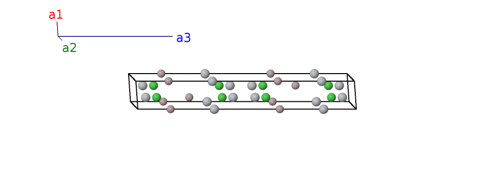 | $\mathbf{B_{5}}$ | = | $\frac{1}{3} \, \mathbf{a}_{1}+\frac{2}{3} \, \mathbf{a}_{2}+z_{3} \, \mathbf{a}_{3}$ | = | $\frac{1}{2}a \,\mathbf{\hat{x}}+\frac{\sqrt{3}}{6}a \,\mathbf{\hat{y}}+c z_{3} \,\mathbf{\hat{z}}$ | (2b) | Al II |