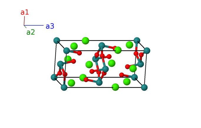 | $\mathbf{B_{23}}$ | = | $- x_{4} \, \mathbf{a}_{1}+\left(y_{4} + \frac{1}{2}\right) \, \mathbf{a}_{2}- \left(z_{4} - \frac{1}{2}\right) \, \mathbf{a}_{3}$ | = | $- a x_{4} \,\mathbf{\hat{x}}+b \left(y_{4} + \frac{1}{2}\right) \,\mathbf{\hat{y}}- c \left(z_{4} - \frac{1}{2}\right) \,\mathbf{\hat{z}}$ | (8c) | O II |