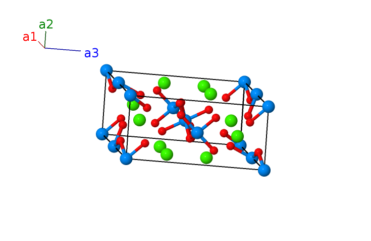 | $\mathbf{B_{18}}$ | = | $- x_{6} \, \mathbf{a}_{1}+\left(y_{6} + \frac{1}{2}\right) \, \mathbf{a}_{2}- \left(z_{6} - \frac{1}{2}\right) \, \mathbf{a}_{3}$ | = | $- \left(a x_{6} + c \left(z_{6} - \frac{1}{2}\right) \cos{\beta}\right) \,\mathbf{\hat{x}}+b \left(y_{6} + \frac{1}{2}\right) \,\mathbf{\hat{y}}- c \left(z_{6} - \frac{1}{2}\right) \sin{\beta} \,\mathbf{\hat{z}}$ | (4e) | O II |