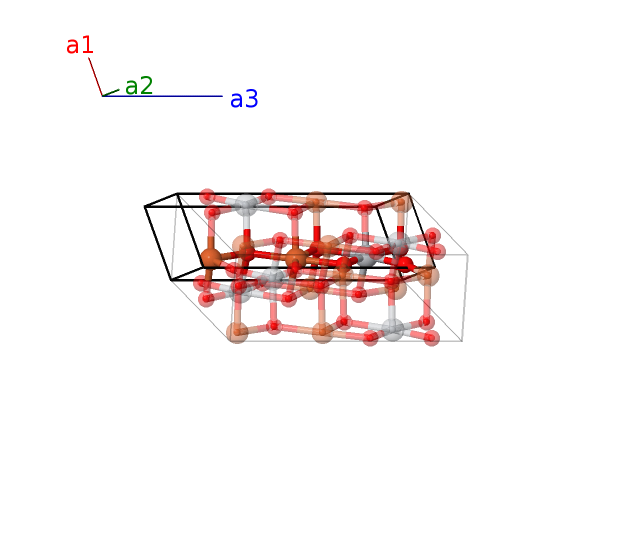 | $\mathbf{B_{10}}$ | = | $y_{4} \, \mathbf{a}_{1}- y_{4} \, \mathbf{a}_{2}+\left(z_{4} + \frac{1}{2}\right) \, \mathbf{a}_{3}$ | = | $- b y_{4} \,\mathbf{\hat{y}}+c \left(z_{4} + \frac{1}{2}\right) \,\mathbf{\hat{z}}$ | (8f) | O II |