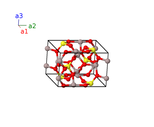 | $\mathbf{B_{32}}$ | = | $- \left(x_{7} - \frac{1}{2}\right) \, \mathbf{a}_{1}+\left(y_{7} + \frac{1}{2}\right) \, \mathbf{a}_{2}+\left(z_{7} + \frac{1}{2}\right) \, \mathbf{a}_{3}$ | = | $- a \left(x_{7} - \frac{1}{2}\right) \,\mathbf{\hat{x}}+b \left(y_{7} + \frac{1}{2}\right) \,\mathbf{\hat{y}}+c \left(z_{7} + \frac{1}{2}\right) \,\mathbf{\hat{z}}$ | (8h) | O IV |