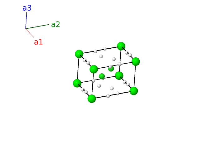 | $\mathbf{B_{3}}$ | = | $\frac{2}{3} \, \mathbf{a}_{1}+\frac{1}{3} \, \mathbf{a}_{2}$ | = | $\frac{1}{2}a \,\mathbf{\hat{x}}- \frac{\sqrt{3}}{6}a \,\mathbf{\hat{y}}$ | (2c) | Cl I |