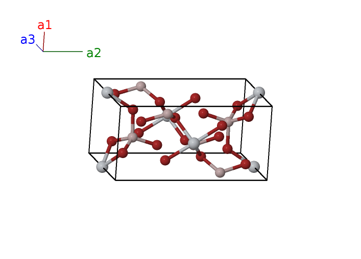 | $\mathbf{B_{6}}$ | = | $- \left(x_{2} - \frac{1}{2}\right) \, \mathbf{a}_{1}+\left(y_{2} + \frac{1}{2}\right) \, \mathbf{a}_{2}+\left(z_{2} + \frac{1}{2}\right) \, \mathbf{a}_{3}$ | = | $- a \left(x_{2} - \frac{1}{2}\right) \,\mathbf{\hat{x}}+b \left(y_{2} + \frac{1}{2}\right) \,\mathbf{\hat{y}}+c \left(z_{2} + \frac{1}{2}\right) \,\mathbf{\hat{z}}$ | (4c) | Al I |