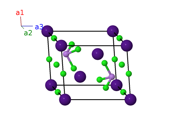 | $\mathbf{B_{14}}$ | = | $- x_{5} \, \mathbf{a}_{1}- \left(x_{5} - y_{5}\right) \, \mathbf{a}_{2}- z_{5} \, \mathbf{a}_{3}$ | = | $- \frac{1}{2}a \left(2 x_{5} - y_{5}\right) \,\mathbf{\hat{x}}+\frac{\sqrt{3}}{2}a y_{5} \,\mathbf{\hat{y}}- c z_{5} \,\mathbf{\hat{z}}$ | (6g) | Cl II |