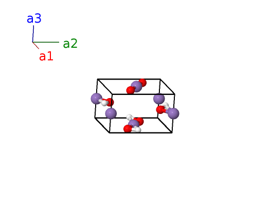 | $\mathbf{B_{9}}$ | = | $\left(x_{3} + \frac{1}{2}\right) \, \mathbf{a}_{1}- \left(y_{3} - \frac{1}{2}\right) \, \mathbf{a}_{2}+\left(z_{3} + \frac{1}{2}\right) \, \mathbf{a}_{3}$ | = | $a \left(x_{3} + \frac{1}{2}\right) \,\mathbf{\hat{x}}- b \left(y_{3} - \frac{1}{2}\right) \,\mathbf{\hat{y}}+c \left(z_{3} + \frac{1}{2}\right) \,\mathbf{\hat{z}}$ | (4c) | O I |