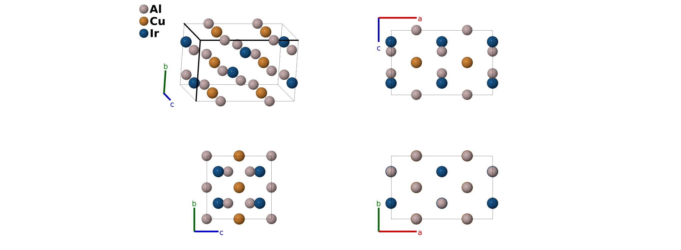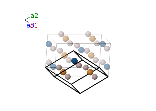 | $\mathbf{B_{4}}$ | = | $\frac{3}{4} \, \mathbf{a}_{1}+\frac{3}{4} \, \mathbf{a}_{2}+\frac{1}{2} \, \mathbf{a}_{3}$ | = | $\frac{3}{4}a \,\mathbf{\hat{x}}+\frac{1}{2}c \,\mathbf{\hat{z}}$ | (4b) | Cu I |