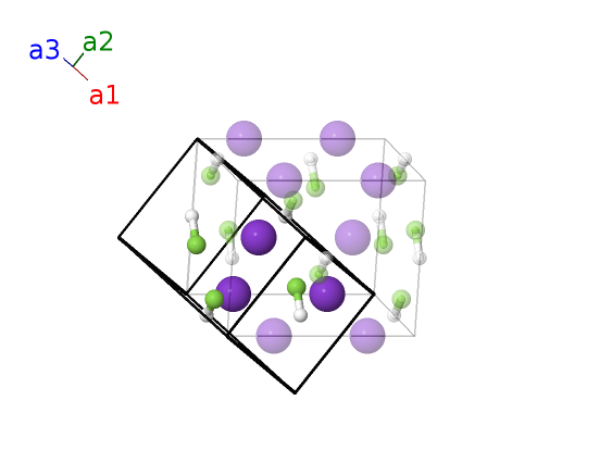 | $\mathbf{B_{8}}$ | = | $- x_{3} \, \mathbf{a}_{1}+\left(x_{3} + \frac{1}{2}\right) \, \mathbf{a}_{2}+\frac{1}{2} \, \mathbf{a}_{3}$ | = | $a \left(x_{3} + \frac{1}{2}\right) \,\mathbf{\hat{x}}- a x_{3} \,\mathbf{\hat{y}}$ | (8h) | F I |