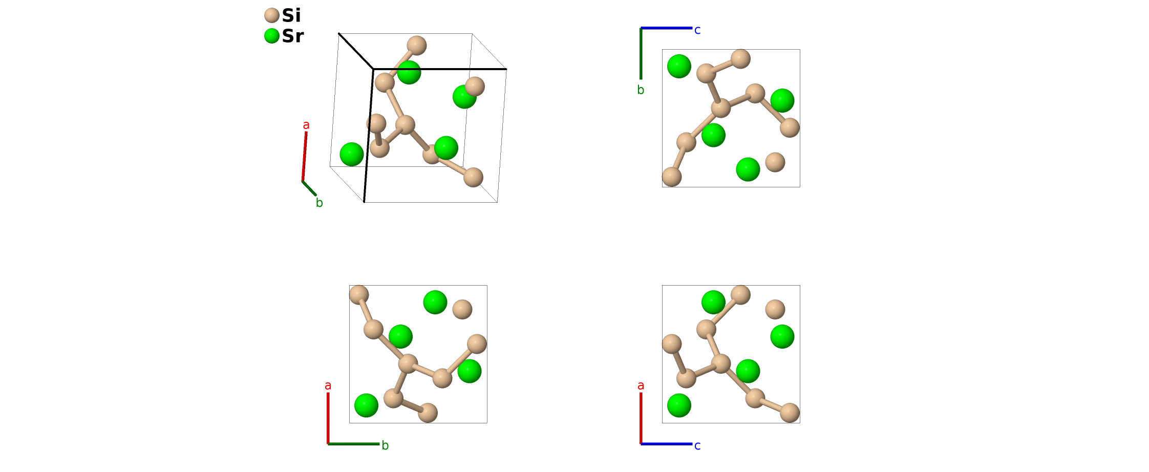 | $\mathbf{B_{9}}$ | = | $\left(x_{2} + \frac{1}{4}\right) \, \mathbf{a}_{1}+\left(x_{2} + \frac{3}{4}\right) \, \mathbf{a}_{2}- \left(x_{2} - \frac{3}{4}\right) \, \mathbf{a}_{3}$ | = | $a \left(x_{2} + \frac{1}{4}\right) \,\mathbf{\hat{x}}+a \left(x_{2} + \frac{3}{4}\right) \,\mathbf{\hat{y}}- a \left(x_{2} - \frac{3}{4}\right) \,\mathbf{\hat{z}}$ | (8c) | Si I |